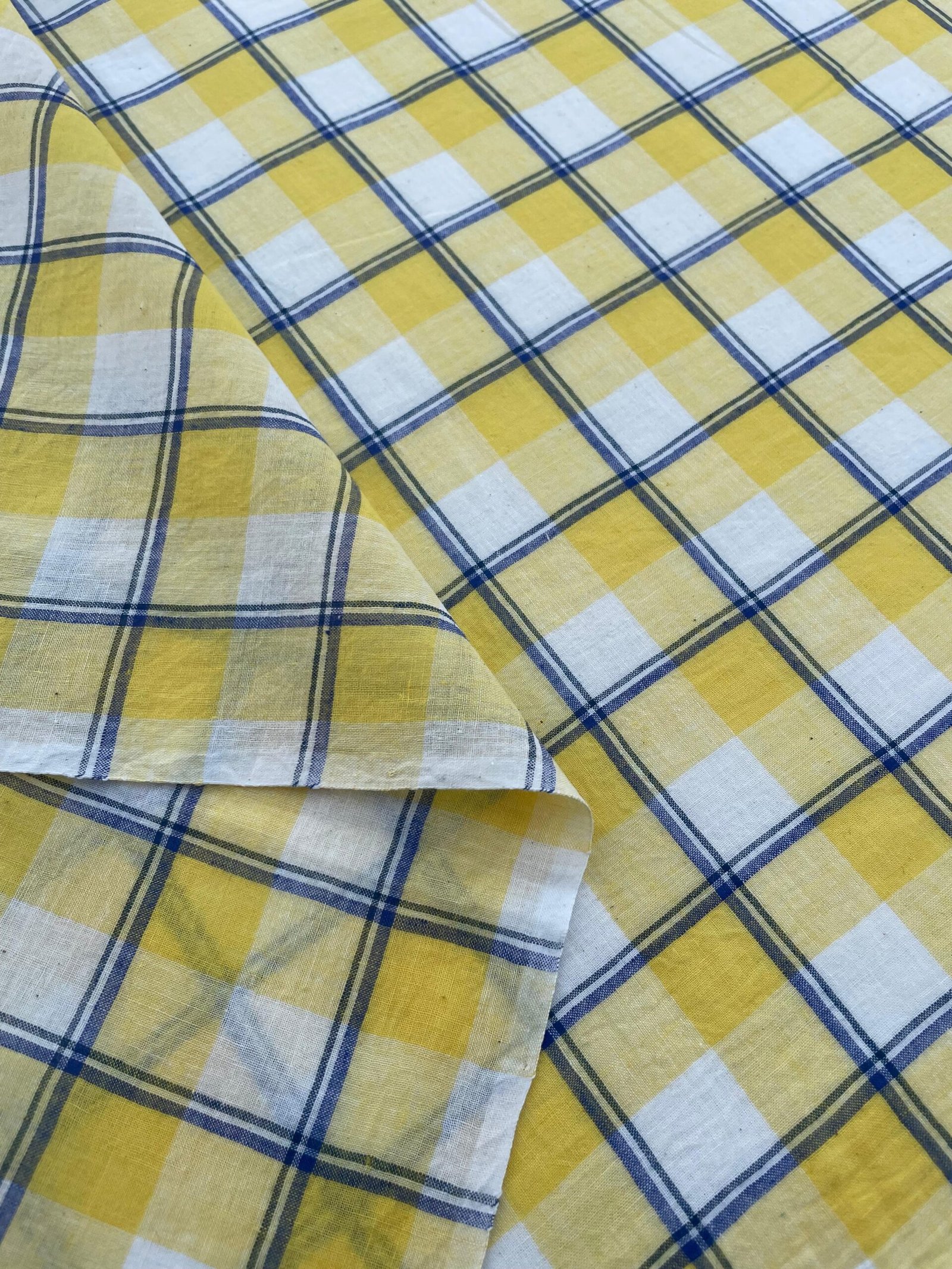 A vibrant and timeless handloom fabric featuring classic yellow checks, crafted with precision and care. Perfect for adding a cheerful touch to your wardrobe.