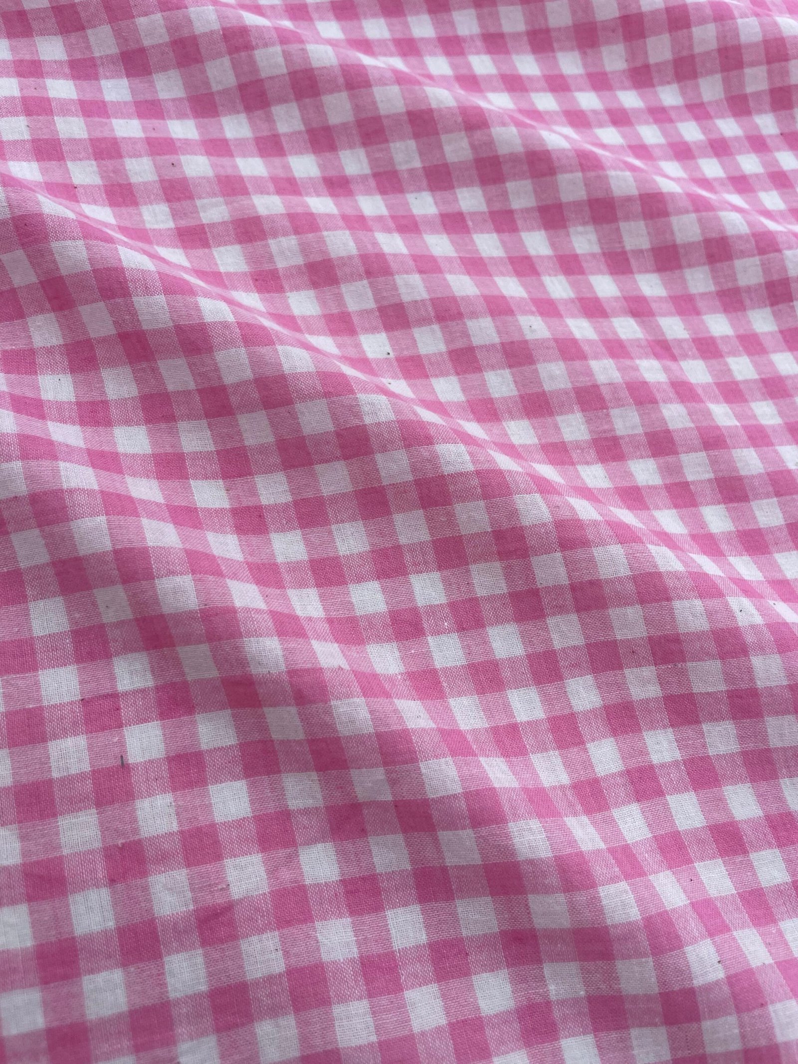 A charming handloom fabric featuring delicate pink square checks, adding a touch of elegance and warmth. Perfect for stylish apparel.