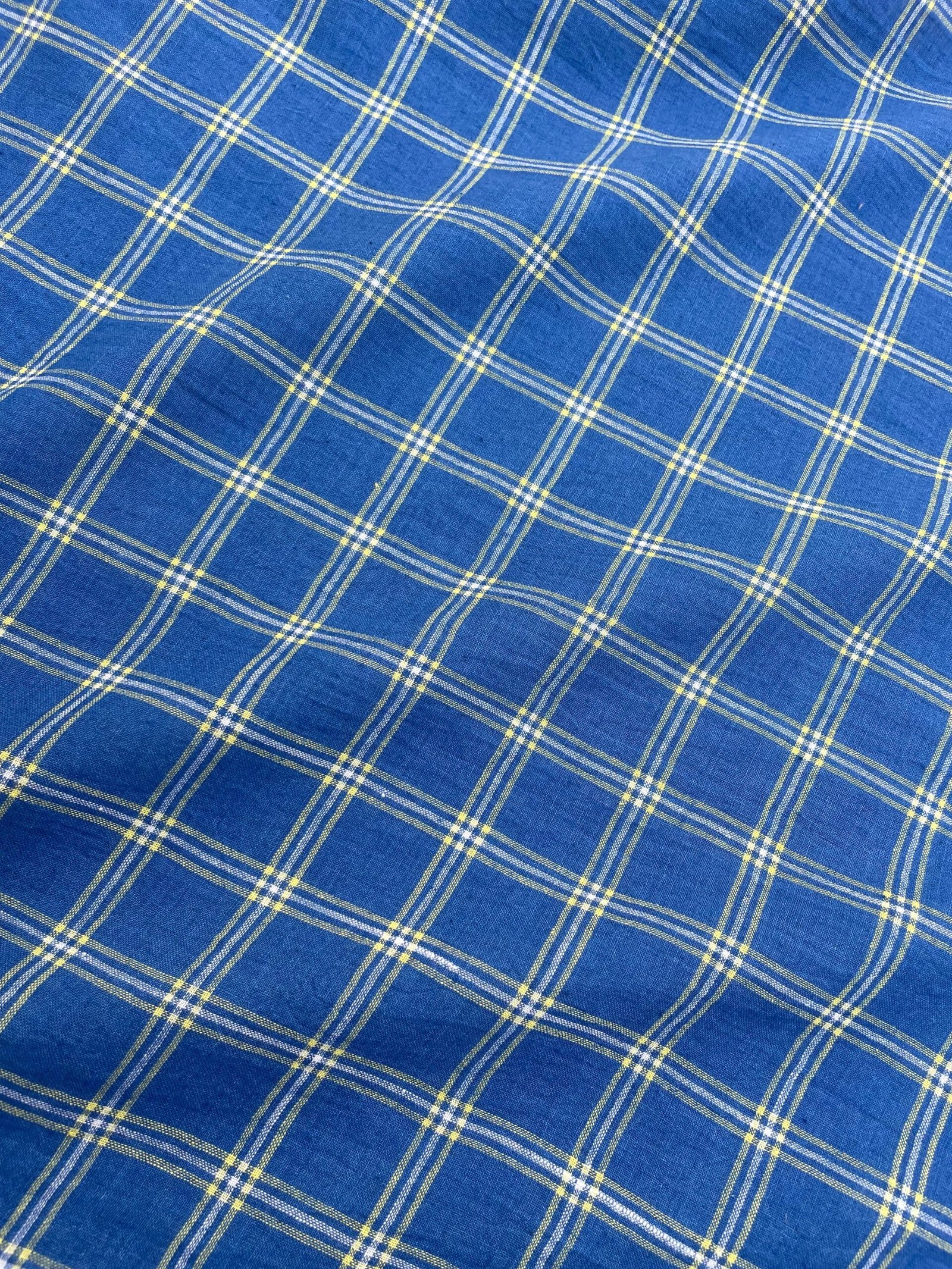 A classic handloom fabric with elegant blue checks, offering a versatile and sophisticated look. Ideal for both traditional and contemporary styles.